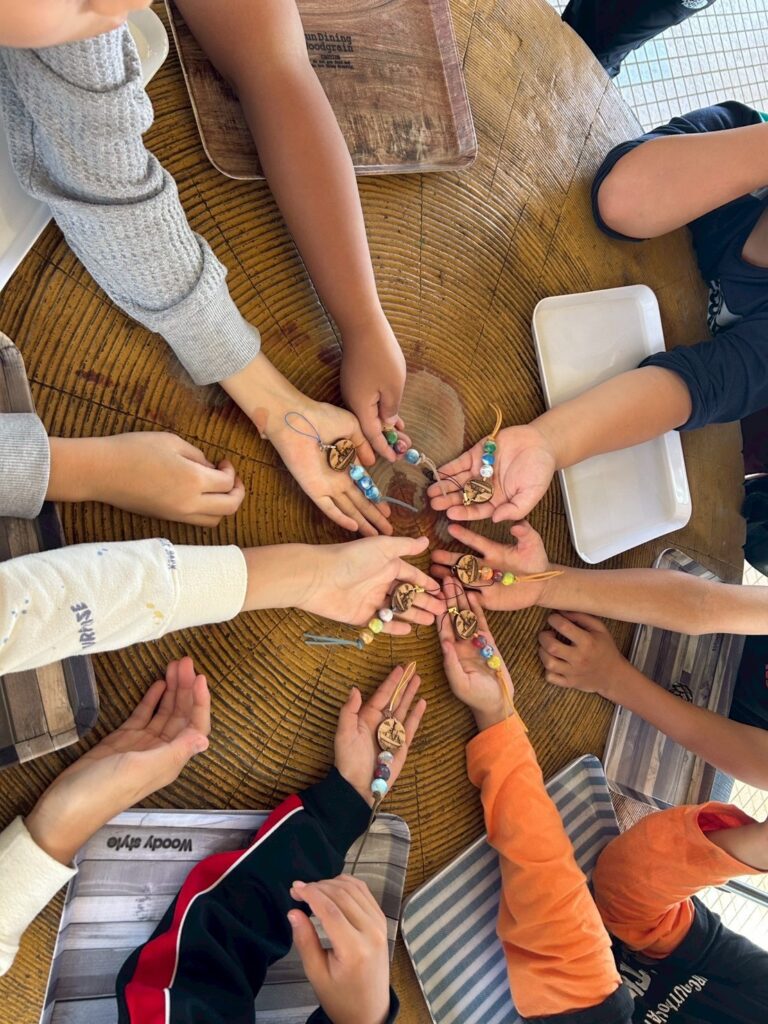 また、試合の待ち時間を利用して、永野様と子どもたちで前日清掃で出たゴミを利用した作品作りを行いました。