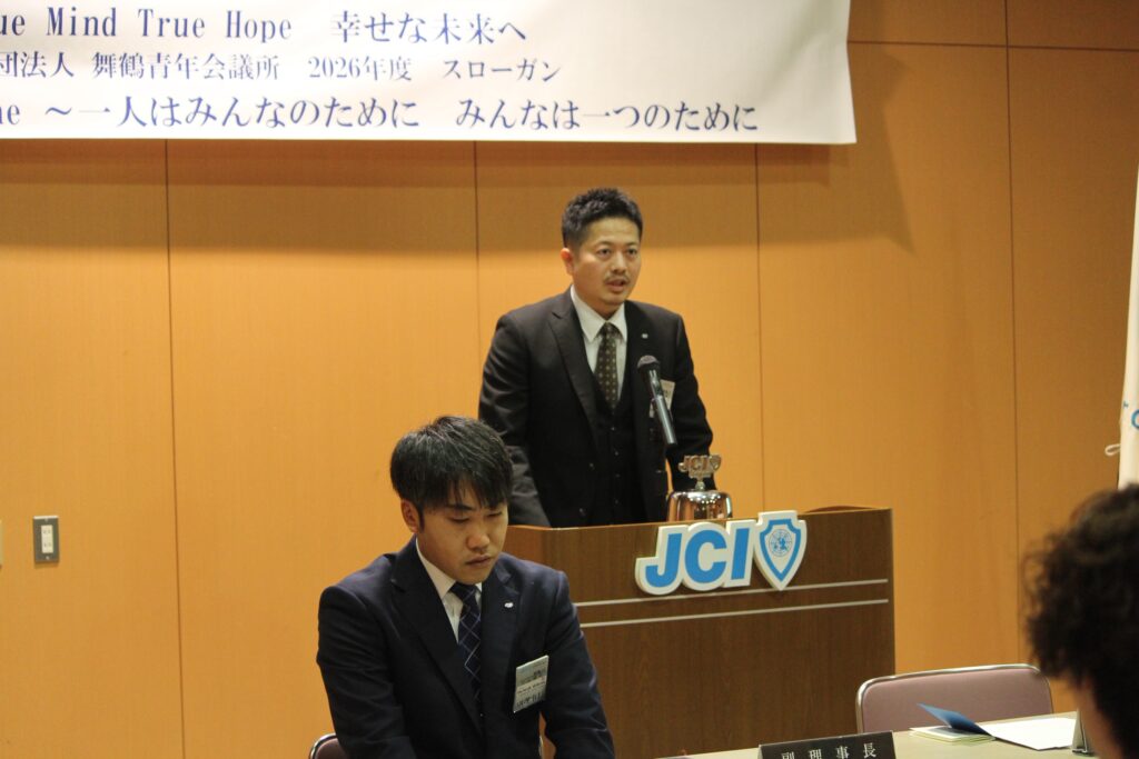 2月18日(水)に2月例会並びに第37回通常総会を開催しました。 2月例会では、坂根理事長の力強い理事長挨拶でスタートし、第37回通常総会では、今年度の舞鶴青年会議所の各方針を示す各議案を、全会一致のもと、ご承認いただきました。 -