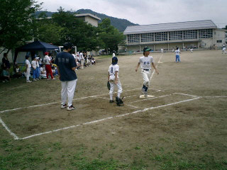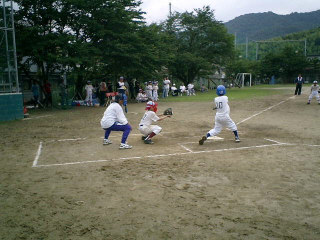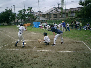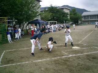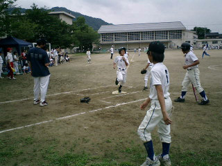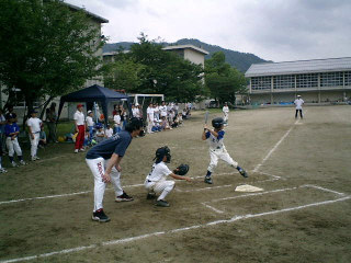 | チビッコソフトボール余内大会は、7月13日(土)に行われました。当初は雨がちらつき、開催が危ぶまれましたが、少しでも子供たちにいいコンディションで試合をしてもらおうと保体部を中心に保護者、先生方が一緒になってグランドにたまった雨水をすくい大会を行うことができました。子供たちは、これまで日々取り組んできた練習の成果を力いっぱい発揮し余内っ子らしいすばらしい試合を展開しました。プレーする子供、応援する子供、また濡れたボールを一生懸命ふく子供など、みんなが力をあわせて頑張ってくれました。 観戦する保護者や地域の方々、先生たちも子供たちに惜しみない拍手と歓声をおくっていました。 |