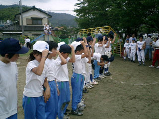 | 今年は出場チームが、6チームとやや減少しましたが、監督さんはじめ、指導にあたっていただいた方々、地域委員や保護者のみなさんが日々の練習等を通して子供たちに関わっていただいた姿に、まさに地域で子供たちを育てていこうというこの大会の目的を改めて認識させていただきました。「余内っ子!本大会でも力をあわせて頑張ろう!!」 |