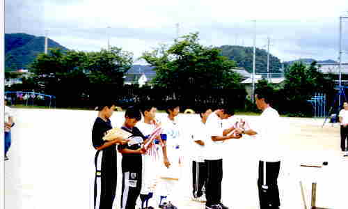 | 当校区大会は、去る7月14日中筋小学校において、昨年より1チーム減の9チームで開催した。今年も、地域単独チーム・地域連合チームの参加となり、トーナメント方式の為、1球1打に大きな声援やため息が湧き起こった。子供達は一生懸命試合に臨み、勝負はともかく白熱した好ゲームが各試合に見られた。また、保護者の応援は試合以上に白熱していた。 |