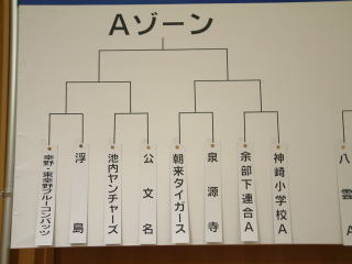 | ないよう | 7月6日より始まった校区大会も熱戦が繰り広げられ出場校32校が決定し、そして本日、それぞれのチームの監督、キャプテンが一同に集結し8月17日(日)に行われる舞鶴大会の組み合わせ抽選会が行われました。 |