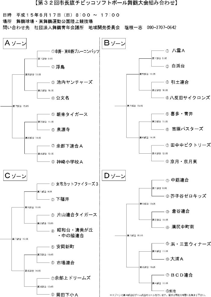 | Cゾーンの組み合わせ結果 | Dゾーンの組み合わせ結果 |