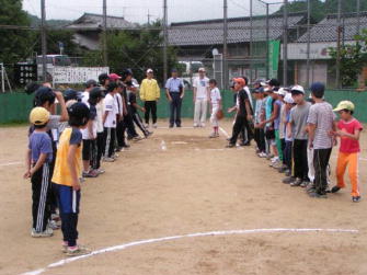 朝来小学校PTA チビッコソフトボール朝来大会は、出場2チームで3試合行い2勝したチームが舞鶴大会に出場するという方式で、7月13日(日)に行われました。夜半の雨の影響によるグランドコンディションが気になったことと、天気予報があまりよくなかったことから開催するかどうか悩みましたが決行。少しでも子供たちにいいコンディションで試合をしてもらおうと保体部を中心に保護者、先生方が一緒になってグランドにたまった雨水をすくい砂を入れるなどして大会を行うことができました。今年は保護者からマグネット式スコアボードと手動式ストライク・ボール・アウトの表示板を寄贈していただき朝来大会に花を添えていただきました。子供たちは、これまで日々取り組んできた練習の成果を遺憾なく発揮し朝来っ子らしいすばらしい緊迫した好ゲームを展開しました。プレーする子供、応援する子供など、みんなが力をあわせて頑張りました。観戦する保護者や地域の方々、先生たちも子供たちに惜しみない拍手とファインプレーの度に大歓声をおくっていました。 もともと子供の人数が少なくそれぞれ忙しい子供達が多いため、人数集めのために地域委員さんに奔走していただき出場チームをつくることができました。練習にあたっては監督さんはじめ、指導にあたっていただいた方々、地域委員や保護者のみなさんが日々子供たちに関わっていただいた姿に、まさに地域で子供たちを育てていこうというこの大会の目的を改めて認識させていただきました。 本年は、舞鶴大会用のユニフォームを新調しました。真っ赤に燃えて舞鶴大会に旋風を巻き起こす勇姿を楽しみにしています。 |