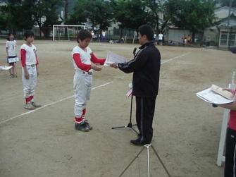 雨が心配される中、行われたチビッコソフトボール大会、試合が進むにつれ、子供たちの熱気に押されてか、次第に雨雲は遠のき、無事大会を終えることができた。 少子化、あるいは、スポーツの多様化で年々競技人口が少なくなっていると思われるソフトボール。しかし、今年も連合とはいえ4チームが参加し、男女差・ 学年差を感じさせない熱戦が繰り広げられた。また保護者とともに地域の皆さんが一体となって応援しているのをみると、このソフトボール大会が地域に密着した歴史あるものであることが感じられた。今後がより良い関係を築いていく事を切に願うものである。 |