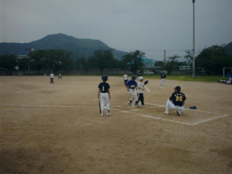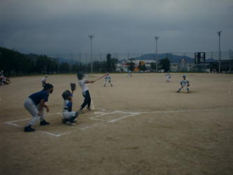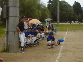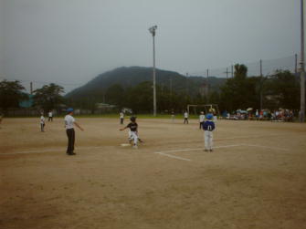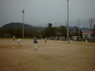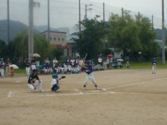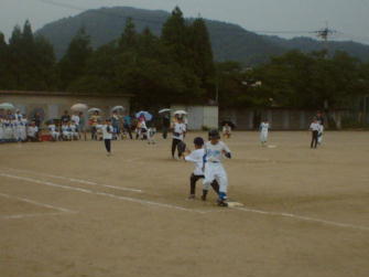 今年度の校区大会は、校舎の増改築工事のため、城南中学のグランドをお借りしての実施となりました。朝8時に集合してきた選手は、やや緊張した面もちの者、リラックスした表情の者、いろいろでしたが、開会式では参加9チームの選手みんながいふう堂々と入場行進しました。 試合は、見事なヒットやファインプレーのたびに、家族やチームメイトから大きな拍手や喝采がわき起こり、選手のプレーに負けず劣らず応援にも熱が入りました。こうした中、緊迫した接戦が見られました。その熱に押され、校長先生自ら、審判員を買って出ていただき、大会に花を添えていただきました。 A、Bの各ゾーンで決勝戦をしている最中に、激しい雨に降られました。グランドはまるで池のようになり、試合の中止・順延が頭をよぎりました。しかし、うまいことに表層の水は川のように流れ、雨がやんで5分もすれば土が見えてきました。選手、監督、応援の方、役員、その場にいるみんなが手にスポンジを持ち、全員で水抜きをしました。その甲斐あり1時間後には試合が再開されました。みんなで協力して大会を支えていることの素晴らしさを目の当たりにして、大きな感動を覚えました。 その後、選手は再び熱戦を繰り広げ、各ゾーンの優勝チームと、ゾーン2位同士による舞鶴大会出場決定戦の勝者、合わせて3チームが舞鶴大会出場のキップを手にしました。 今年度は、練習の段階から近隣の城南中学、西舞鶴高校にグランドをお借りし、校区大会の開催を地域のみなさんに温かく支えていただき、心よりお礼申し上げます。