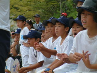 | 勝利した試合の後は、みんなで勝ったんだという達成感で本当にうれしそう。よく頑張りました。 | ベンチに座っていても、みんながボールに視線を集中して声を出して応援します。 |