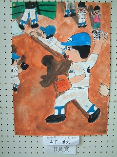 第34回市長旗チビッコソフトボール大会を一人でも多くの人に観戦してもらえるよう、又、子供たちに選手としてだけでなく参加していただけるよう、大会のPRポスターを募って、大会ポスター展を行っております。今年度、作品を募集致しましたところ、舞鶴市内全小学校より、133作品の応募を頂きました。ありがとうございました。