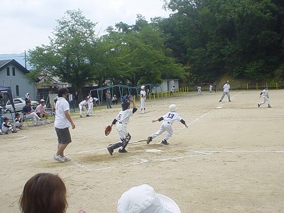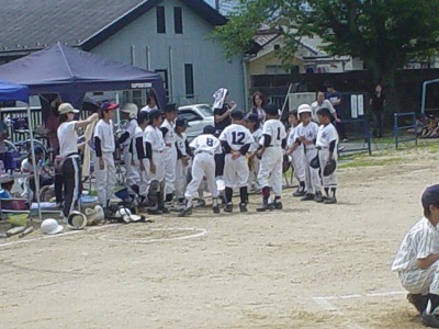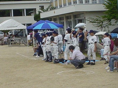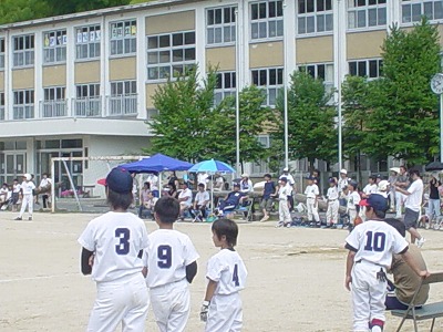 出場チーム ●校区大会の様子 安達PTA会長より 空模様が心配されましたが、子ども達の思いが雨雲を吹き飛ばしたのか、大会当日は絶好のコンディションとなり、7月10日に無事校区大会を終えることが出来ました。 これもひとえに、早朝の準備をはじめ大会運営にご尽力いただいた大会関係者の皆さん、地域の皆さんのお陰と感謝しているところです。 約2ヶ月間、練習に励んできた子ども達は、元気一杯の素晴らしいプレーを見せてくれました。結果は、「浜・三笠パワフルナイン」が優勝し、「北吸・三宅スピードスターズ」が惜しくも敗れましたが、子ども達の一生懸命のプレーは私達応援していた者に、「感動」と「感激」を与えてくれました。決勝戦に出場出来なかった子ども達も第一試合(親善試合)で元気一杯にプレーすることが出来、良き体験と思い出をつくることが出来たと思います。 「浜・三笠パワフルナイン」の選手諸君は、三笠小学校の代表として舞鶴大会で力一杯頑張って下さい。三笠の皆が応援しています。 少子化の影響を受け2チームでの校区大会ではありますが、子ども達が望む限り今後も続けていけるよう努力していきたいと思います。