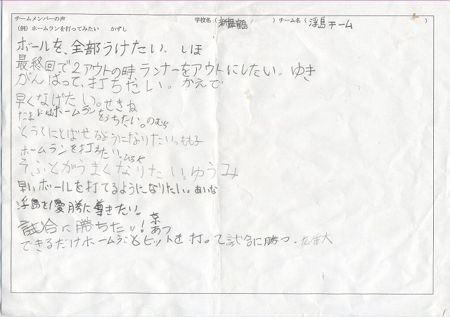 TOP>参加チームの部屋 >新舞鶴小学校>4.浮島チーム