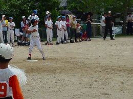 今年は天候が不順のため校区大会開催が危ぶまれましたが、子ども達の気持ちが天に届いたのか、天候にも恵まれ熱戦を繰り広げることができました。大会は全部で6チームが出場し、A、Bのゾーンから1、2位が選ばれ優勝戦、3位決定戦が午後から行われました。特に3位決定戦は舞鶴大会の出場がかかっているためか接戦が繰り広げられました。また優勝チームは昨年と同じチームでしたが、やはり実力があり舞鶴大会でも優勝が十分狙えるチームと思います。これから3チーム8月の舞鶴大会にむけてこれからも頑張って練習に励んで、夏のよい思い出になる試合をしてくれるよう願っております。