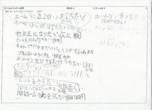 キャプテンを中心に明るく元気でけがもせず、全員一緒に達成感を味わおう!