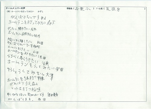 TOP>参加チームの部屋 >志楽小学校>3.泉源寺チーム