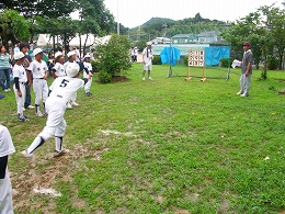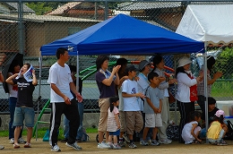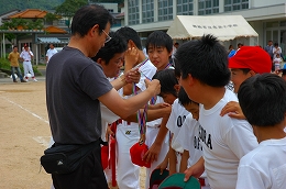 今年のテーマは“今、きみがいちばん輝いている”です。真夏の暑いグランドで一生懸命プレーしている子供たちは、一人一人が輝いています。今年はチビッコソフトボールも第35回目を迎えます。今までの長い歴史の中で数多くの感動がありました。私自身も小学校の時に参加し、現在は子供たちが参加させてもらっており親子2代のチビソフ体験者です。志楽小学校はチビッコソフトボールがさかんで、今年も7チームの参加でがんばっております。しかしまだ参加していない子供たちも多くいます。もっともっと多くの子供たちにチビッコソフトボールを体験してもらいたい。今しか体験できないすばらしい思い出をつくってほしいと思います。志楽小学校では校区大会1位から3位のチームにメダルを贈呈しています。一生懸命がんばってもらうメダルは子供たちにとって格別なものだと思います。保護者の方、監督さん、コーチの方々及び地域の大人の方もこれから暑い中色々お世話をおかけしますが子供たちのためご協力のほどよろしくお願いいたします。勝っても負けても最高の笑顔で精一杯プレーしてください。舞鶴大会に向けてガンバレ!!志楽の子供たち!!