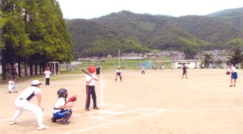 チビソフの練習は、昨年までは1年から6年までの児童が、毎週土曜日の午前中に行っていました。今年は子どもたちの強い希望もあり、土曜日に加えて、木曜日の放課後にも5・6年だけチビソフの練習を行いました。土曜日練習は、1年から4年までのグループと、5年から6年までのグループに分かれ、低学年グループは遊びも交えながらキャッチボール、バッティング、守備などの練習を保護者が指導して行います。高学年グループは、監督や保護者の指導のもと、基本的な練習と、ときには2つのチームに分かれ、試合形式で練習をしています。