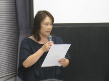 | 舞鶴市ソフトボール協会の方々にもお越し頂きました | 司会を務める舞鶴市PTA連絡協議会の青少年 育成委員会の仲田さん |