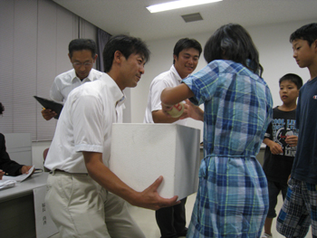 舞鶴市PTA連絡協議会 青少年育成委員会 張田委員長から抽選方法について説明 |
