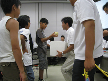 | ストラックアウトの試合規則の説明を(社)舞鶴青年 会議所 青少年育成委員会 堂本より説明 |
