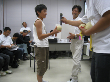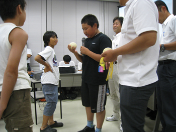 | 抽選後は、各学校のキャプテンが元気よくチーム名と番号を発表していきます | |