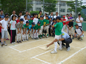 実際に子どもたちが投げながら投球フォーム の確認 |