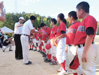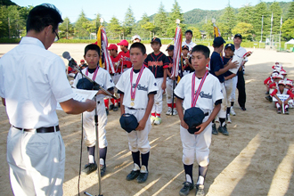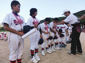 3位の岡田小学校ファイターズ(岡田) 全員に銅メダルの授与 |