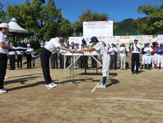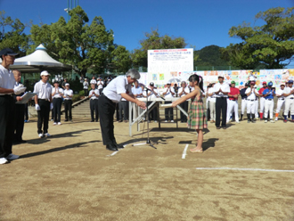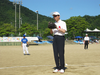 Dゾーンの始球式は舞鶴市教育委員会 佐藤教育長 |