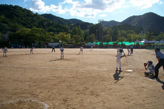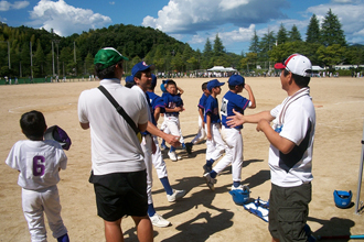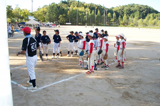 | Aゾーン準優勝の三笠ホワイトドラゴンズチーム(三笠) | Bゾーン準優勝の泉源寺チーム(志楽) |