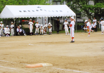 | 7月7日(土)・8日(日) 優 勝 ブルーコンバッツ 準優勝 八反田サイクロンズ 当日は梅雨のため雨が降ったり止んだりする中、7日(土)・8日(日)の2日間にわたって校区を実施しました。今年度は、ブルーコンバッツ連合(幸野・東幸野・芥子谷)、八反田北・丸山連合(八反田北・丸山・丸山口)、御幸フレンズ(御幸)、八反田サイクロンズ(八反田南)の4チームが参加し、力のこもった熱戦が繰り広げられました。 放課後や休日を使い、地域の監督さんや世話係の方々に励まされながら練習を続けた成果を存分に発揮してくれました。3連戦の激闘を制し、ブルーコンバッツと八反田サイクロンズが8月19日の本大会に出場することになりました。 ご多用の中、お世話になりましたご来賓の皆様、主審、塁審、各チームのスタッフの皆様、大きな声で応援していただいた地域の皆様、本当にありがとうございました。点数が入って喜ぶ姿や負けて悔しく涙する姿に、一生懸命な思いが伝わってきました。おかげで子ども達は地域の仲間作りなど大きな今年の思い出を得ることができました。この経験は子ども達にとって大きな財産になると思います。 |