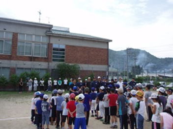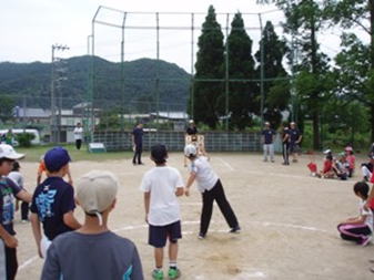 校区大会は、7月6日(土)に実施しました。高学年(4〜6年)は、参加児童数25名を2チームに分け、試合を行いました。暑い中での試合となりましたが、これまでの練習の成果を発揮し、好プレーも多く見られました。試合は、アウトカウントやランナーの状況にあわせた、実践形式のよい経験になり、今後の練習に生かしていけることを期待しています。試合の後、ストラックアウトを行いました。低学年も体育館で、ストラックアウトに挑戦しました。関係保護者・地域の皆様には多数ご参加いただき、子ども達に温かい声援をおくっていただきました。引き続き、監督・指導者の皆様、保護者の皆様、本部役員・保体部の皆様には、児童の安心安全のため、お世話になります。よろしくお願いします。